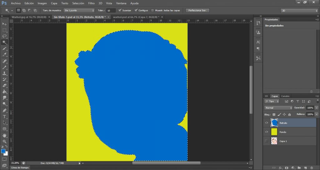 Ya tenemos nuestra base lista para ir realizando las distintas repeticiones y combinaciones de colores de estilo Pop Art.